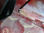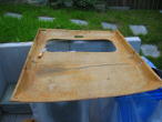 Alten Stoff vom Wagenhimmel abkratzen und dann ab damit zum Sattler: |